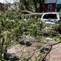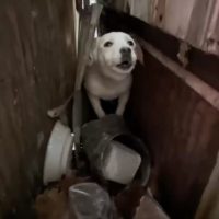 This sweet girl was chained with padlocks when the storm hit, but love found a way to save her.