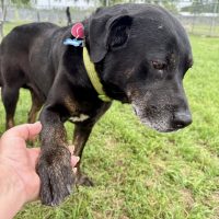 After six years in his “forever” home, this gentle black Lab was found abandoned in a park, breaking the hearts of everyone who remembered his first rescue.
