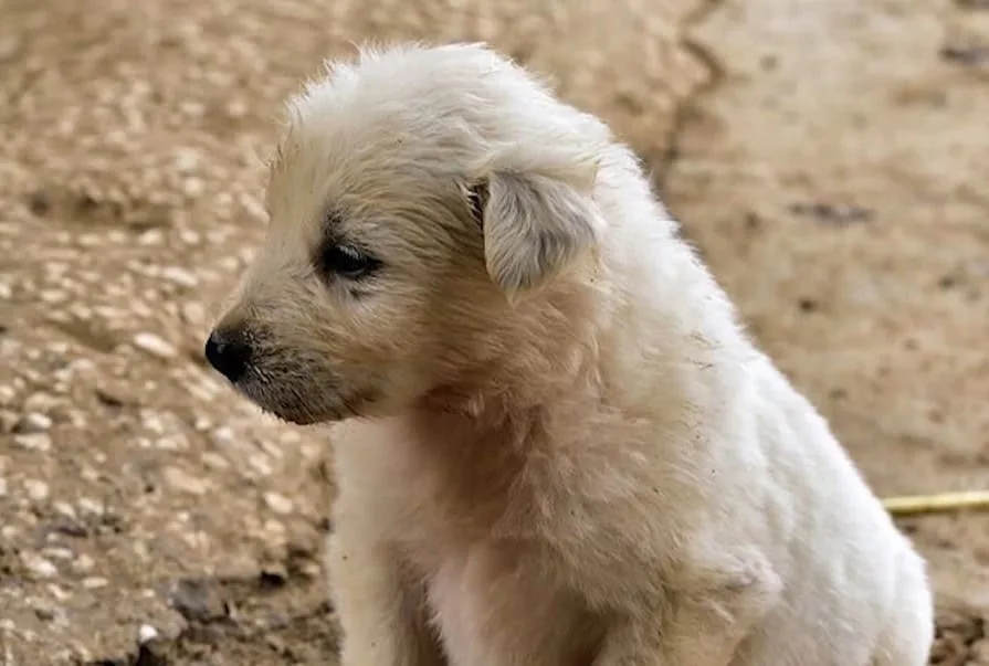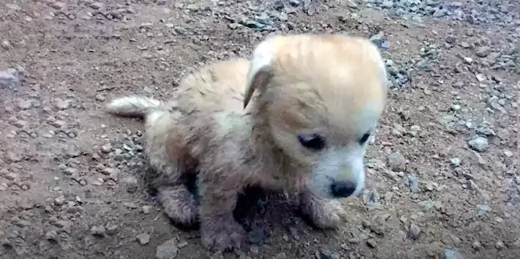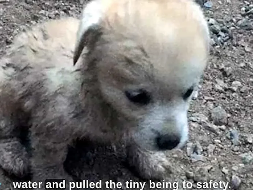 A cold wind moved over the quiet river, and a tiny puppy trembled in the shallow water, too weak to cry for help.