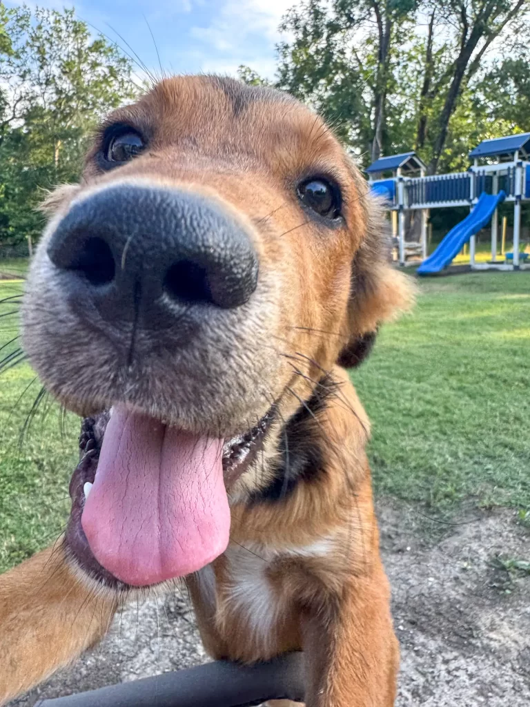 She explored every corner of her foster space with boundless curiosity, her tail a constant blur of motion. Her foster siblings — a mix of dogs who had once known the same fear — welcomed her without question.