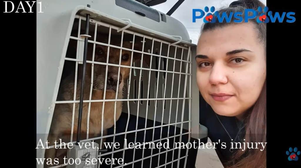 When a rescuer gently lifted the first puppy, Cura cried out softly.