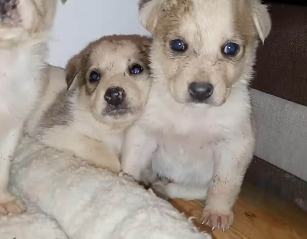The puppies were covered in fleas and parasites, their tiny bodies already struggling.