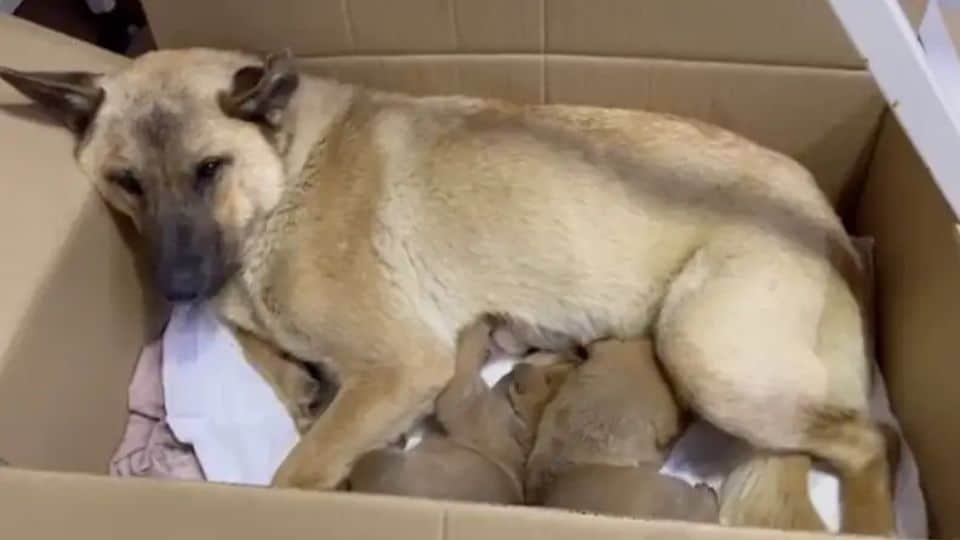 What happened next revealed the extraordinary bond between a mother dog and her newborns.