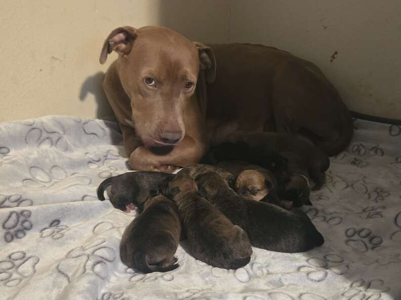 But these remarkable women would not abandon this sweet mama dog. They created a sanctuary, a cozy room where she could rest, feel safe, and prepare for motherhood.