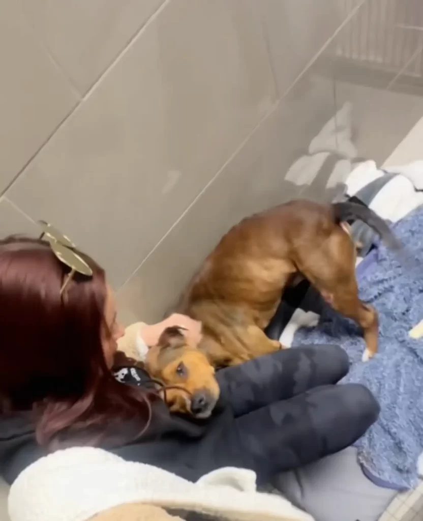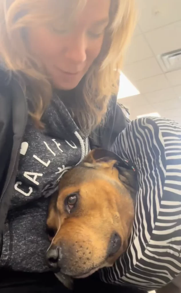“This dog has every reason to give up on people,” she said, “yet he leans into every hand that reaches for him.”