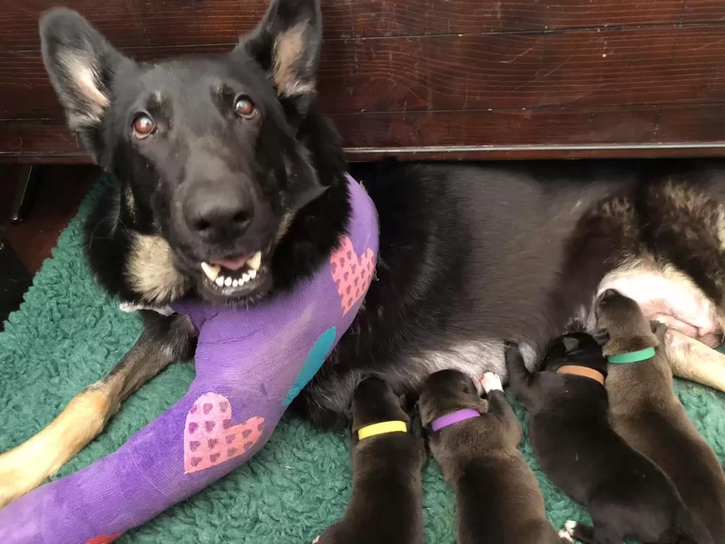 Recovery didn’t happen overnight. Marley’s bones needed time to mend, and caring for eleven puppies was no small task.