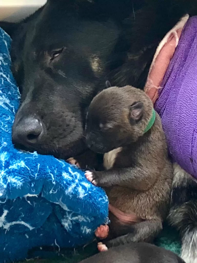 The rescue team stood in awe. Here was a dog who had been broken, left on the roadside to die — and yet she had brought life into the world.