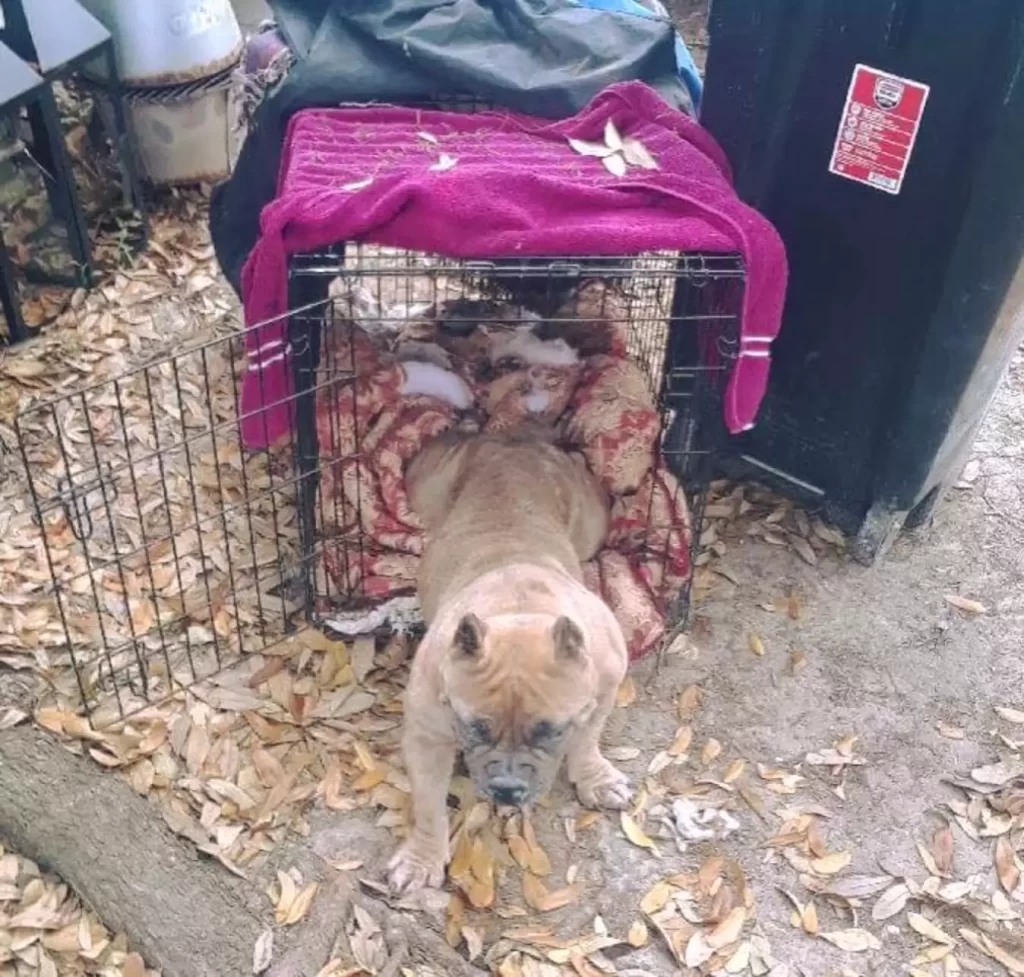 That someone was Alyssa Aguilar, a local animal lover who immediately responded. She and her boyfriend drove straight to the abandoned house, their hearts heavy as they saw the frail bulldog curled up inside her mesh kennel.