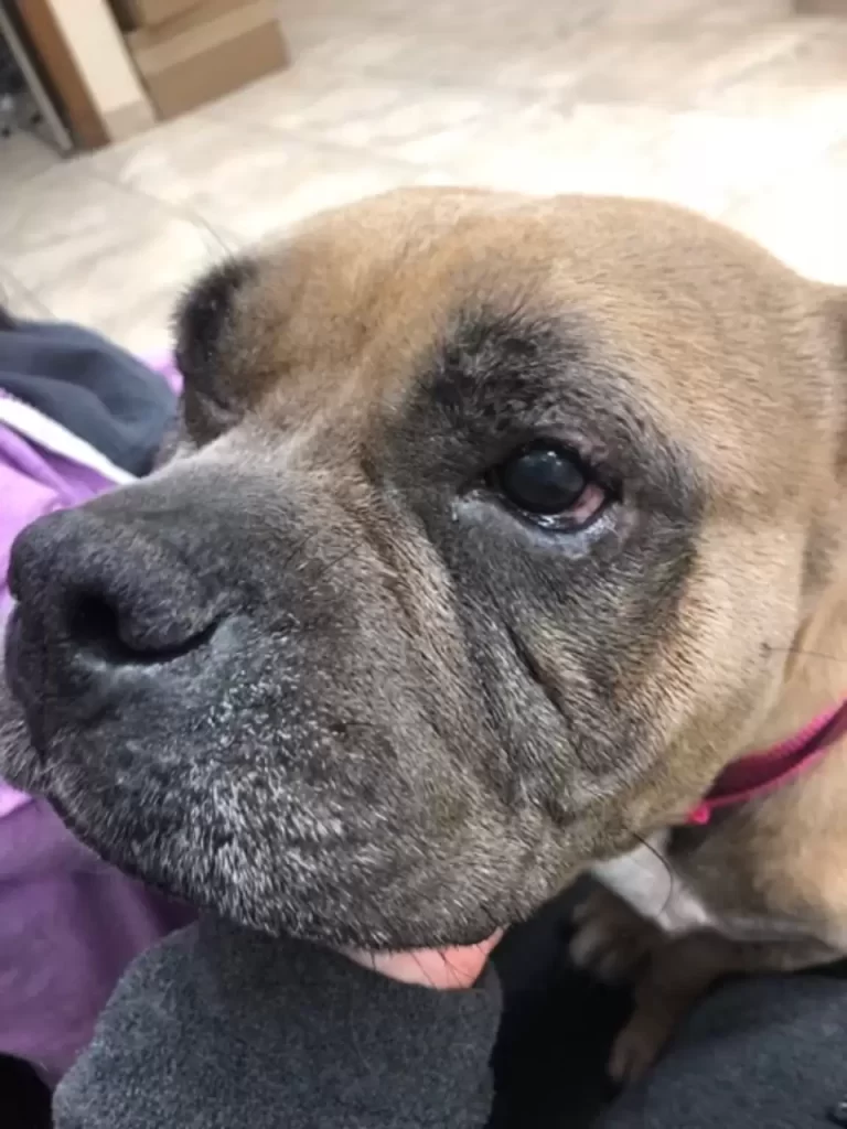 The veterinarian also discovered that her eyelids were folding inward, a painful genetic issue called entropion that would require surgery.