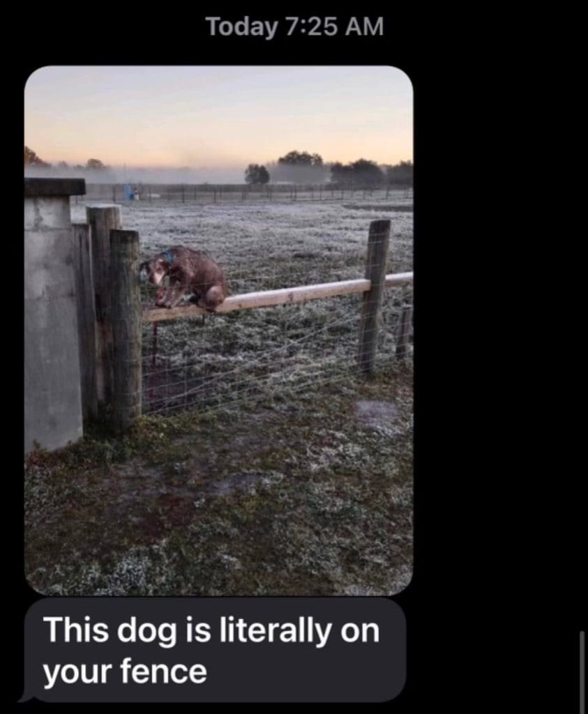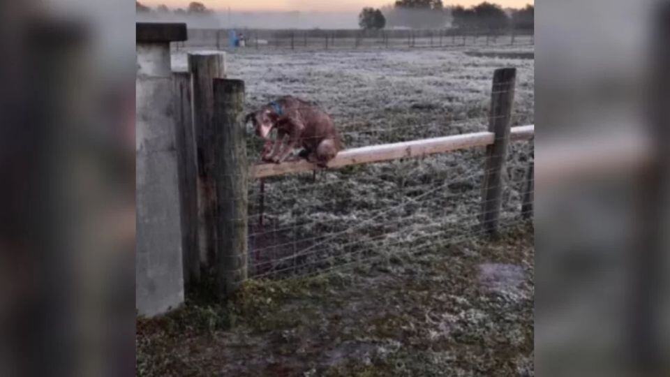 It wasn’t a typical good-morning text or a casual hello. Instead, a single photo appeared on her screen — a frightened, frail dog tied on top of her own backyard fence.
