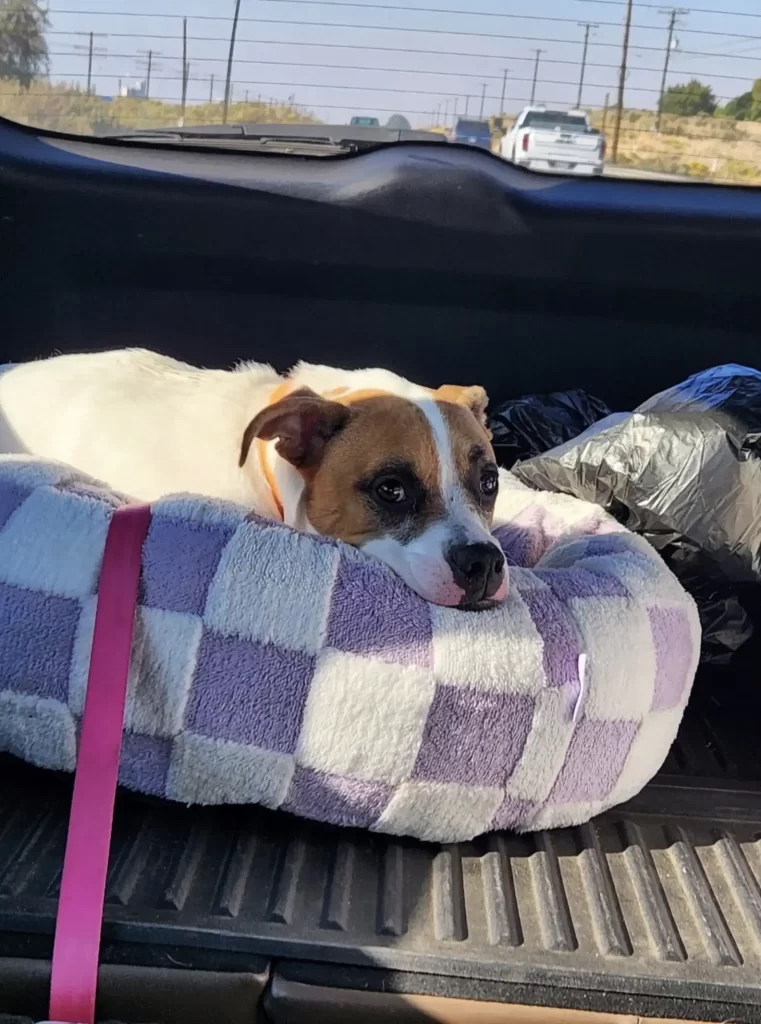 Julie wasn’t there in person when Tinkerbell drove away, but when she received a photo later — Tinkerbell curled up peacefully on the back seat, a content look on her face — tears filled her eyes. “I just cried,” Julie admitted. “After everything she went through, seeing her safe and happy meant everything.”