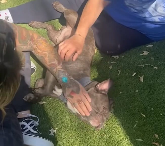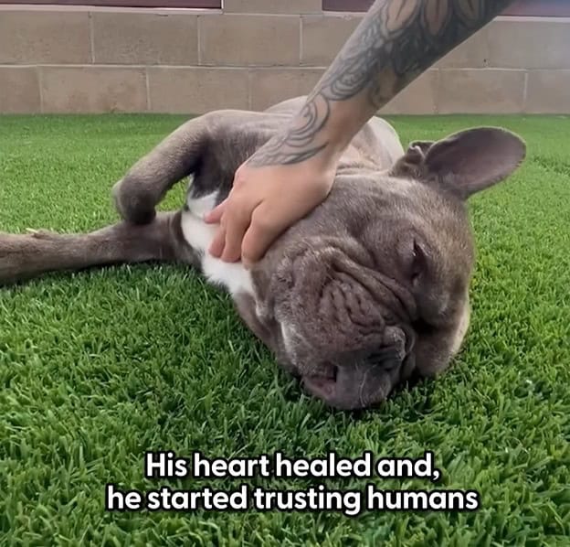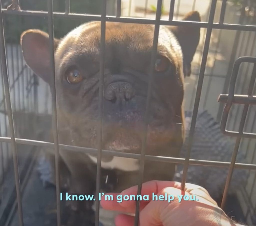 The Frenchie gave a tiny whimper, as if saying, “Please don’t walk away from me too.”