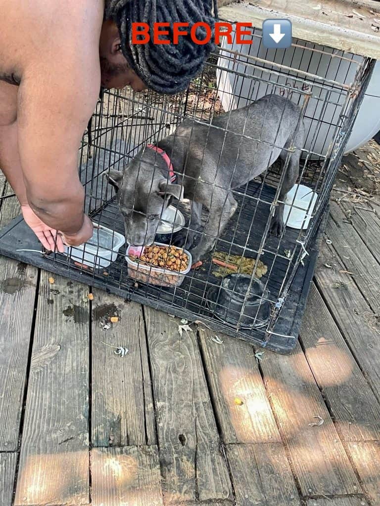 When Kaitlyn first saw Faith, the little pittie mix shook so badly that her paws slipped on the ground.