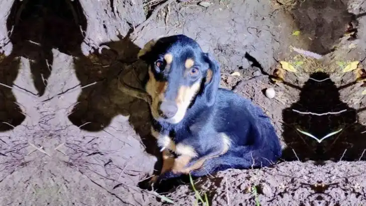 The poor puppy lay there, barely moving, as if he had surrendered all hope of rescue. His big, sorrowful eyes gazed at his saviors, revealing the depth of his despair and fear.