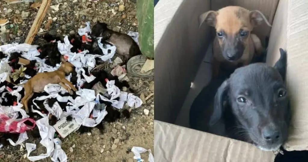 As he went near the overflowing dumpster for a better look, his heart sank when he saw two tiny puppies lying in the discarded trash, struggling to find comfort among the garbage.