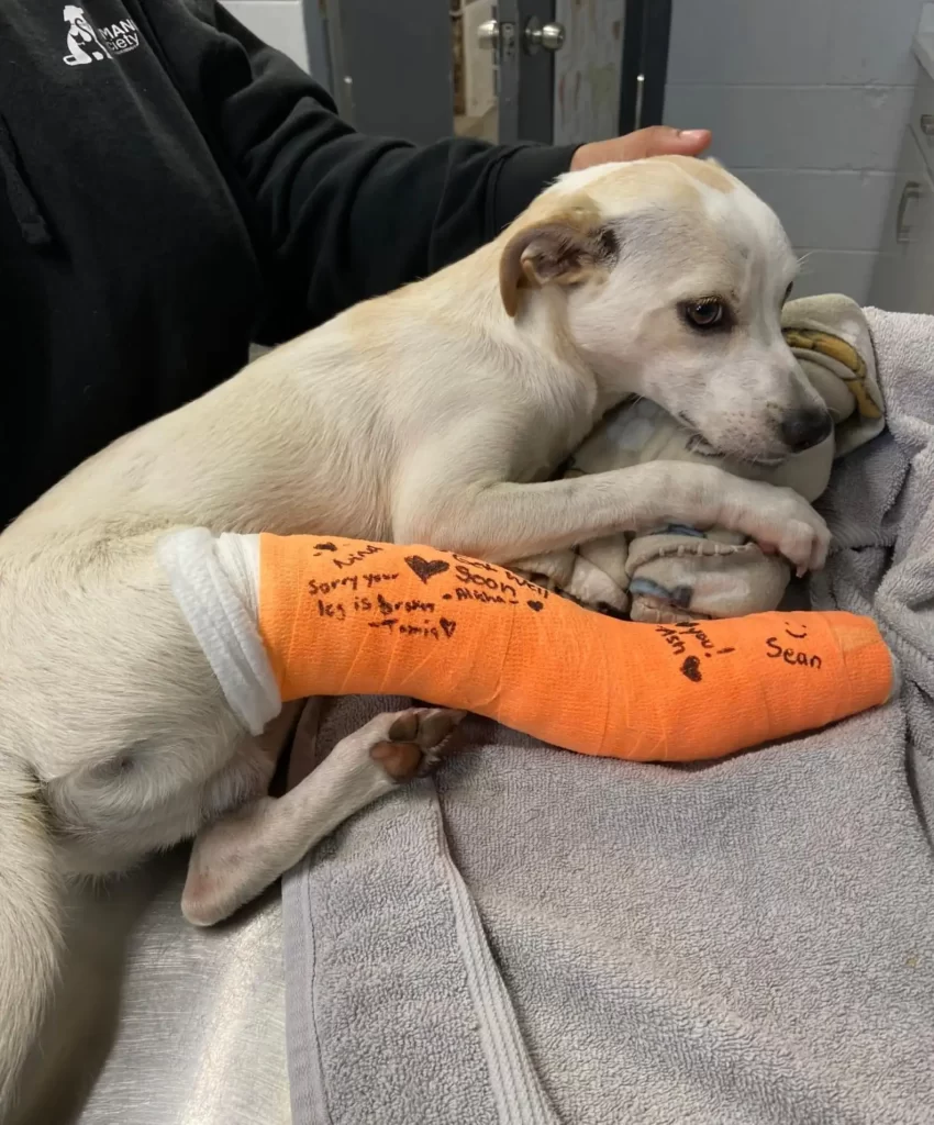 The Humane Society celebrated his progress online, sharing how quickly he adapted to his cast and how much joy he brings despite everything he endured.