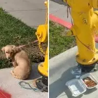 On a quiet street in Southern California, a small puppy sat motionless beside a fire hydrant. Her leash was tightly wrapped around the metal post, …
