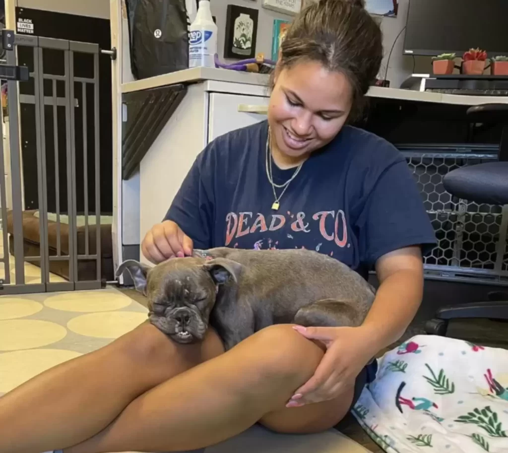 The once-fearful pup, who had defended herself fiercely on the street, now nuzzled into comfort.