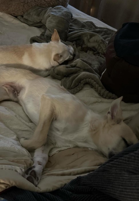 The two dogs play together for hours, their joyful barks filling Abby's home with music.