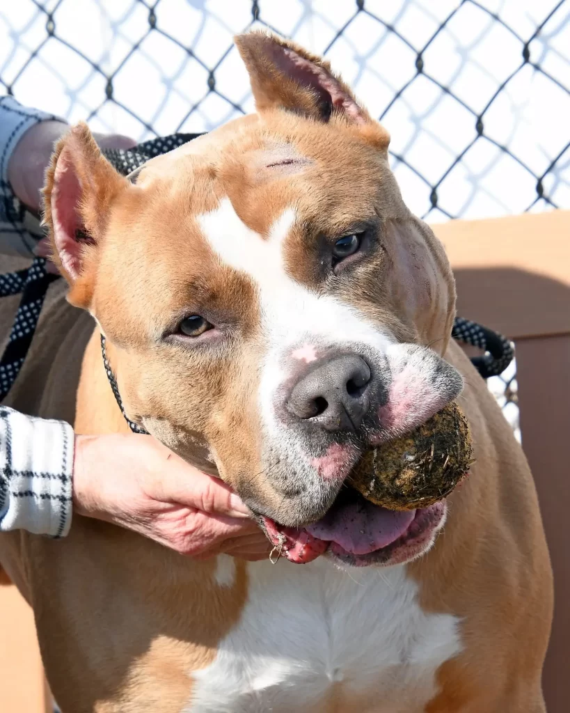 When rescuers first met Biggie seven months ago, he was standing alone, unsure of what would come next. The large pit bull mix had been abandoned, left to navigate life on his own.