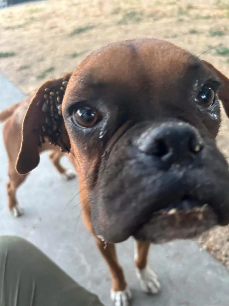 This was a boxer puppy covered in ticks.