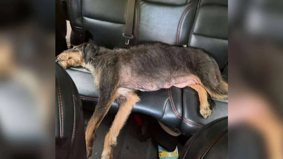 The mama dog lifted her head and met Carlin’s eyes with a look that can only be described as pleading. Somehow, even in her exhaustion, she understood that help had finally arrived.