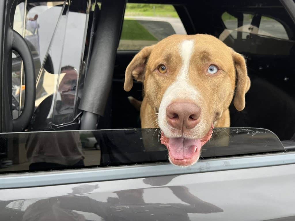 The dog climbed straight into the driver’s seat.
