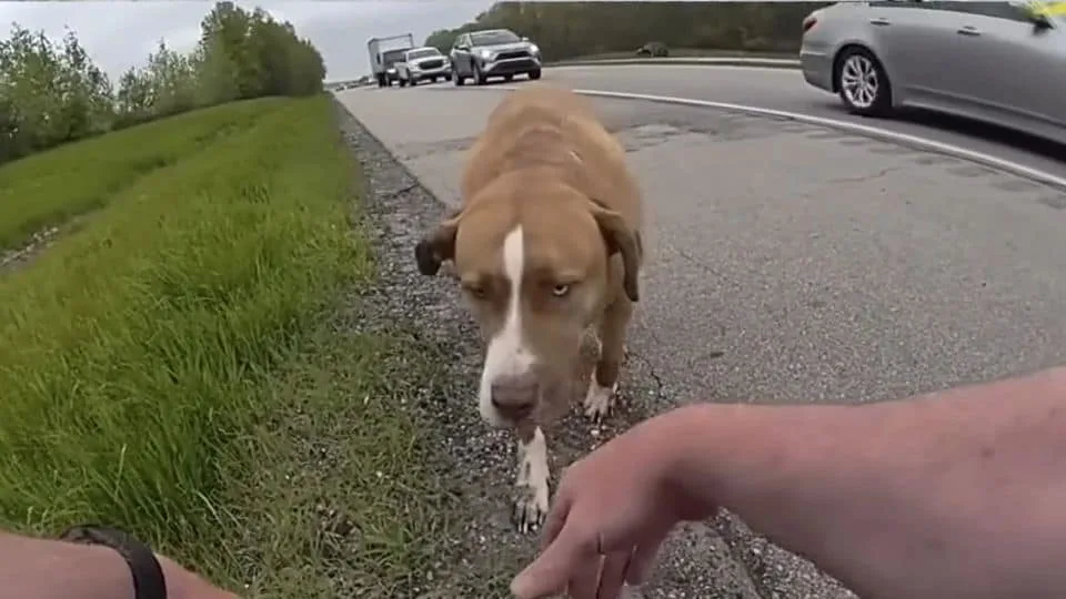 It still remains a mystery how the pup ended up lost and alone on that interstate.
