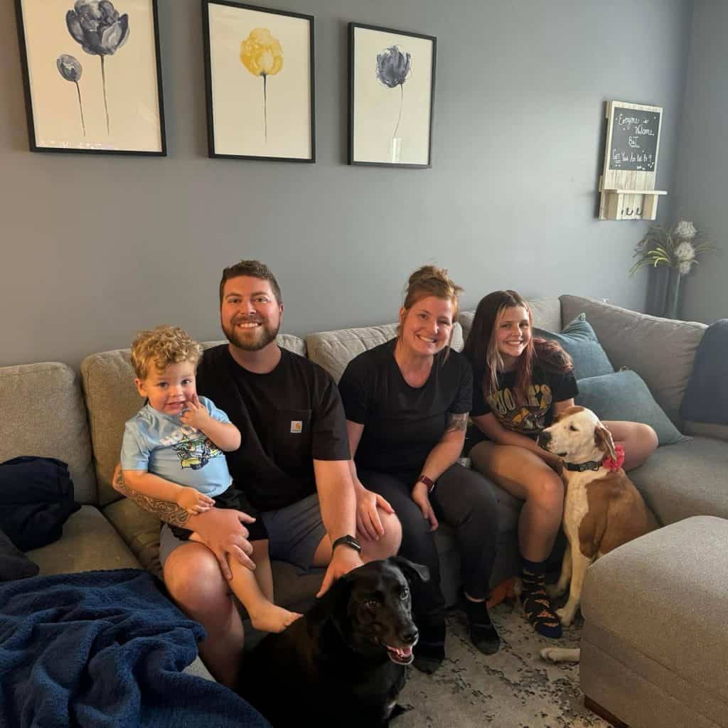 They welcomed her into their home with open arms, soft beds, and warm hearts. Propeller curled up that first night on a real couch, surrounded by love, finally able to rest.