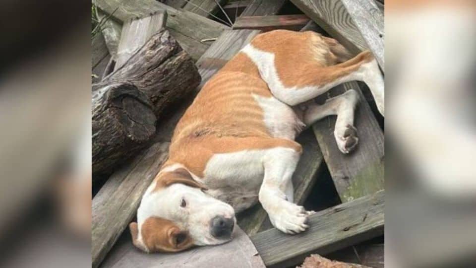 The photo arrived without warning, and it broke everyone’s heart. A small dog lay curled on top of a pile of scrap wood, her body stiff and still.