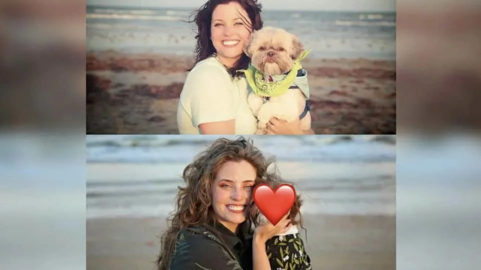 He’s been more than just a pet. He’s been her quiet strength, her reason to keep going when things felt uncertain. Nearly a year after his first surgery, Erin recreated a photo of them together — the same pose, 11 years apart.