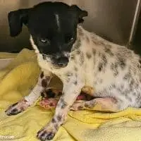 The little black pup lay on a soft bed. His tail gently tapped the blanket like a quiet song. His eyes looked bright and calm. …