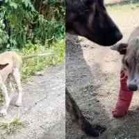 Starving Dog Collapses In The Road But Still Wags Her Tail