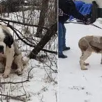 He was only a tiny puppy, and the world already felt too big. His little black body trembled on the cold dirt, like he was …