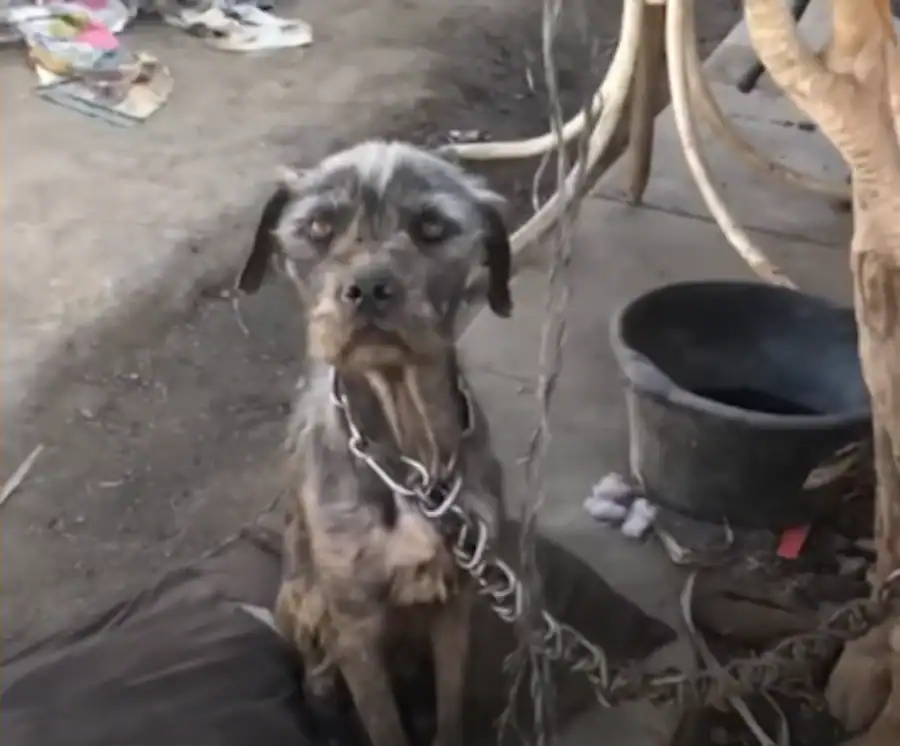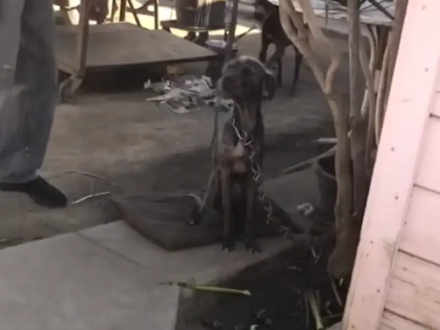 A mother dog was chained outside, her body thin and tired, her ribs speaking louder than her voice.