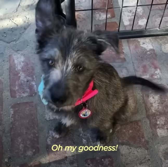 The mama dog watched quietly, ears low, tail giving small hopeful wags.