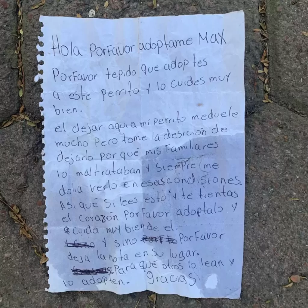 The words, written with visible sorrow, made clear that the dog’s abandonment came not from a lack of love, but from despair.