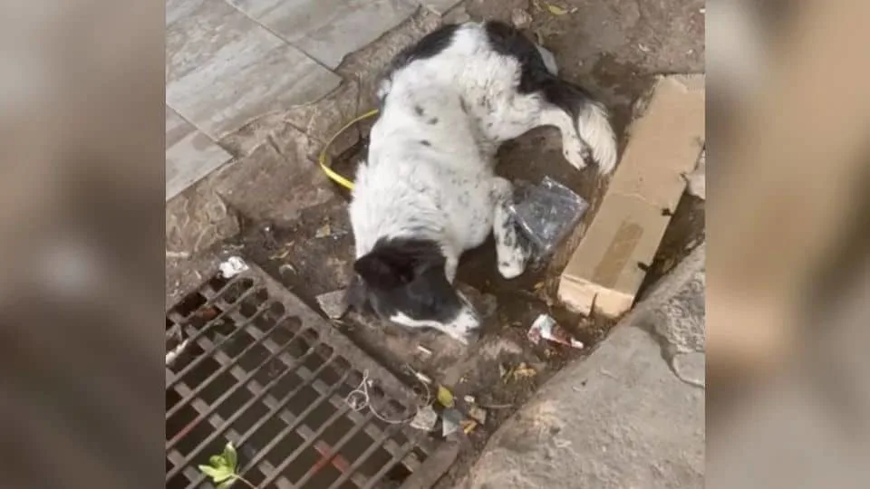 A dog lay perfectly still on the ground, as if the whole world had forgotten she existed.