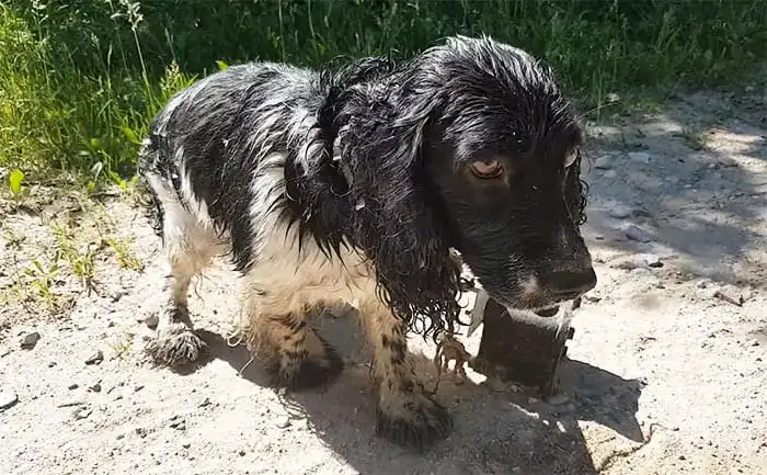 Kind Stranger Sees Soaked Dog by the Water and Finds a Heavy Chain Around His Neck