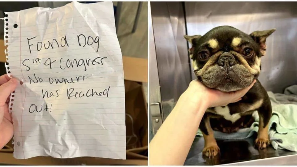Inside was a tiny French bulldog who had been left behind with nothing but a short note.
