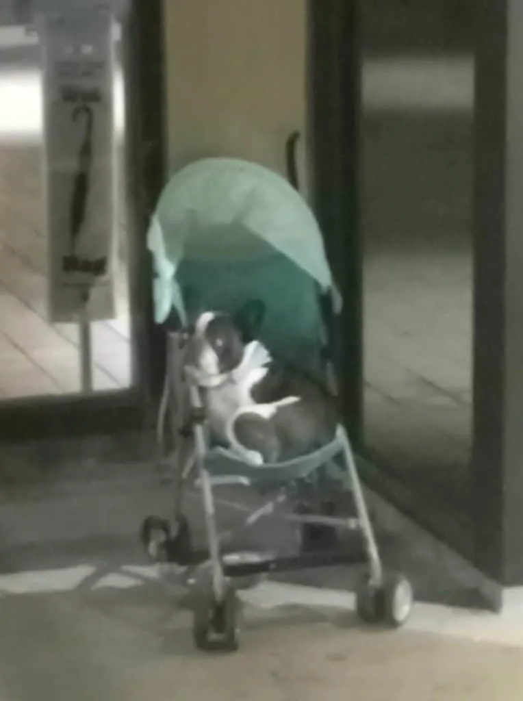 Bandit only knew the sound of wheels rolling, voices echoing, and his human pushing him forward.