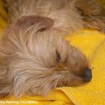 Bandit’s brown and white body sat quietly, his small chest rising and falling as strangers rushed past.