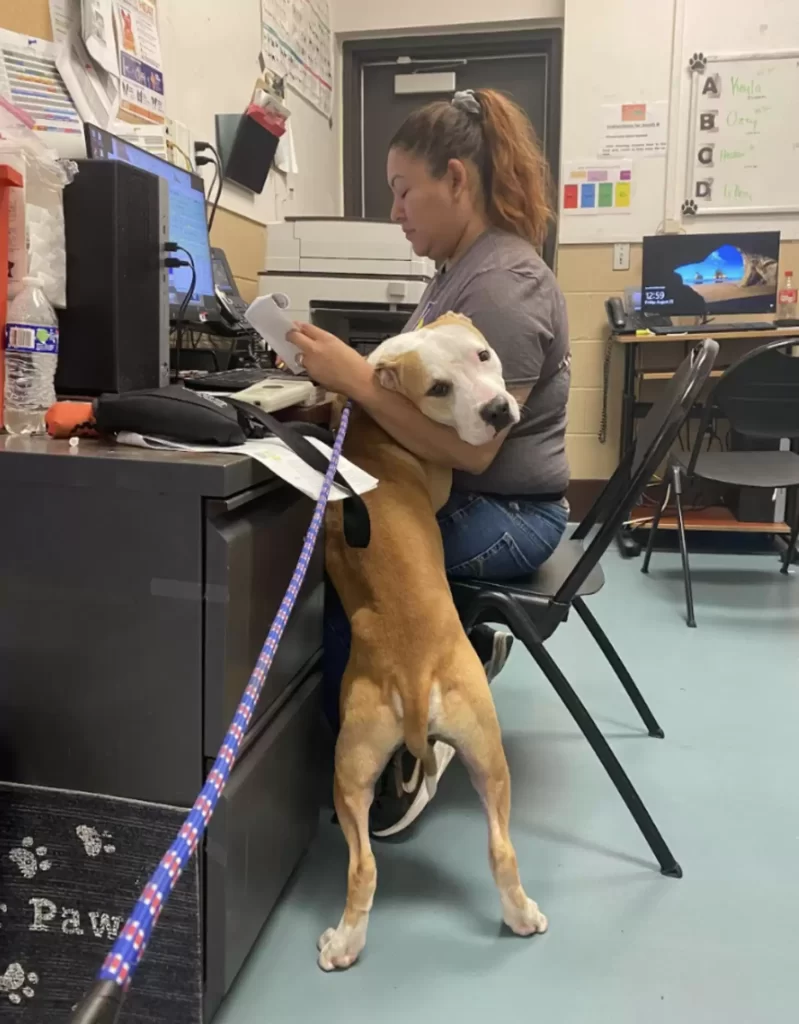 She had spent years helping dogs find homes, but Tanner’s gentle nature instantly drew her in. When she opened his kennel, he didn’t bark or bounce. Instead, he stepped forward and softly wrapped his paws around her, holding on like he never wanted to let go.
