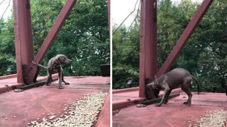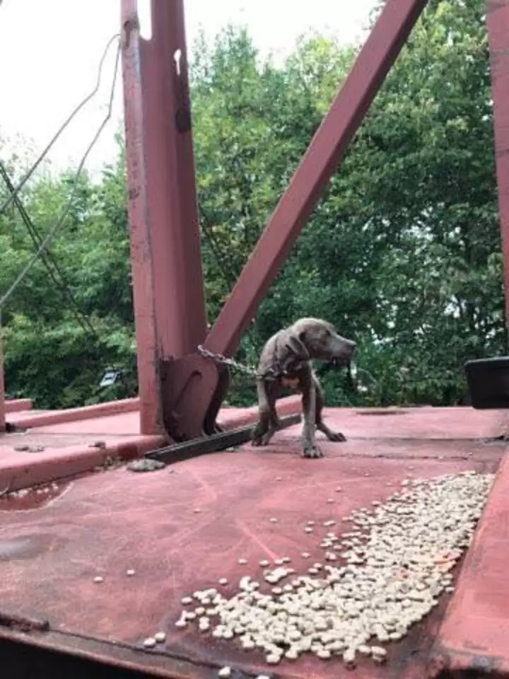 She had been left with a pile of soggy, spoiled food she couldn’t reach, and no water in sight. Her fragile frame trembled in the rain-soaked air.