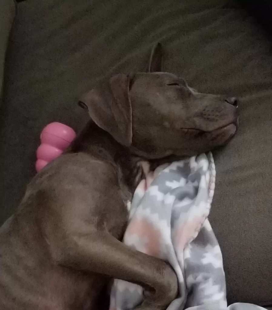 Against all odds, a frightened puppy chained to steel now sleeps soundly in her forever home.