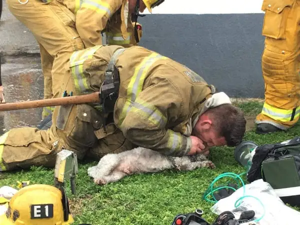 Not everyone would have stayed calm with flames behind them and a lifeless pup in their hands.