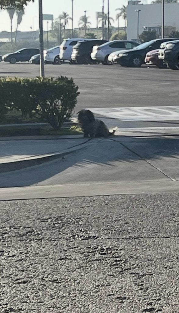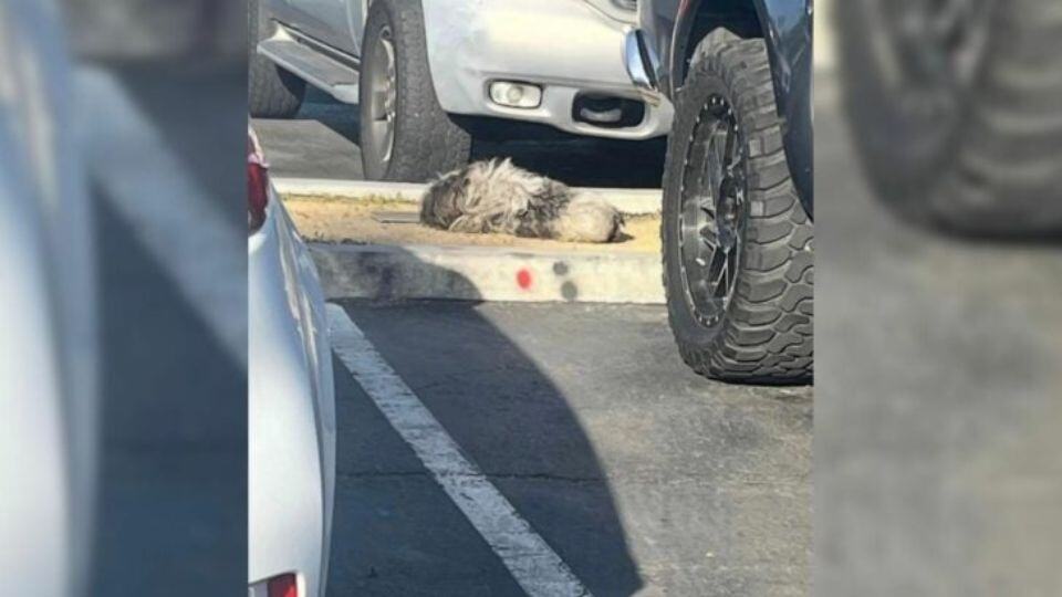 For days, shoppers passed by without realizing that the “clump” resting near the pavement was actually a dog.