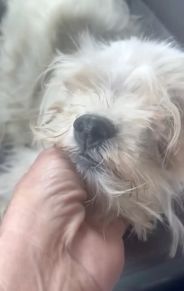The pup’s fur was so tightly matted that it pulled at her skin with every small movement. Even walking was impossible.