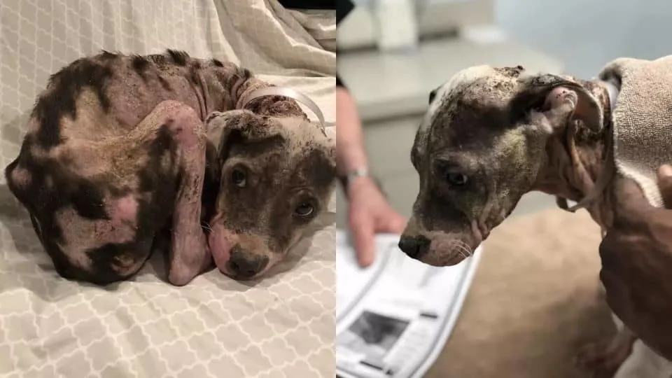 Her skin was bare and crusted, and she trembled every time someone came close. This was not what a puppy should look like.