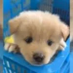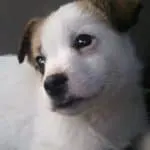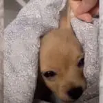 The pup’s eyes were wide and shining in the dark.